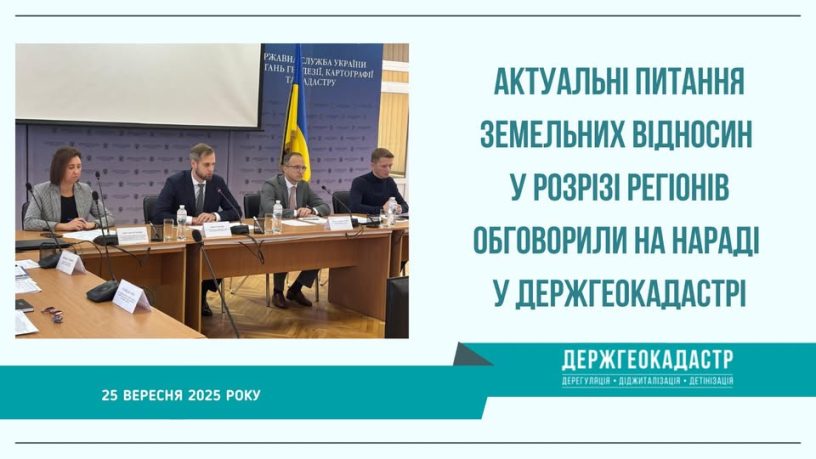 На нараді обговорили актуальні питання земельних відносин у розрізі регіонів – проведення державної інвентаризації земель, стан дотримання термінів та відмови у наданні адміністративних послуг у сфері ведення Державного земельного кадастру (ДЗК) та щодо видачі витягів з технічної документації про нормативну грошову оцінку земельної ділянки.