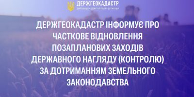 Часткове відновлення позапланових заходів державного нагляду за дотриманням земельного законодавства.
